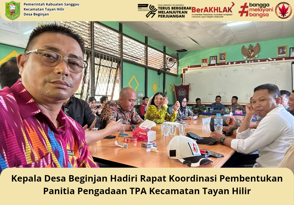 Beginjan, 18 Desember 2025. Kepala Desa Beginjan, Bapak Sutardi, menghadiri undangan Rapat Koordinasi Pembentukan Panitia Pengadaan Tempat Pemakaman Akhir (TPA) Kecamatan Tayan Hilir yang dilaksanakan pada Kamis, 18 Desember 2025, bertempat di Ruang Musyawarah Kantor Kecamatan Tayan Hilir, mulai pukul 09.00 WIB hingga selesai.