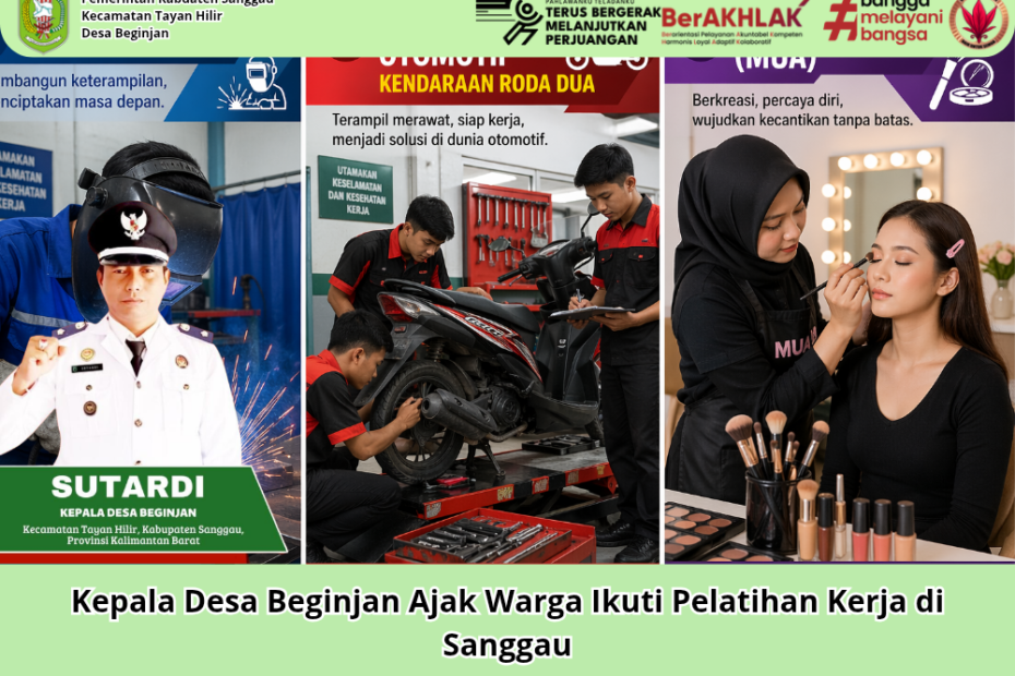 Beginjan, 22 April 2026 – Kepala Desa Beginjan, Bapak Sutardi, menginformasikan kepada seluruh masyarakat Desa Beginjan agar memanfaatkan kesempatan mengikuti program pelatihan kerja yang diselenggarakan oleh Pemerintah Kabupaten Sanggau melalui Dinas Tenaga Kerja dan Transmigrasi.